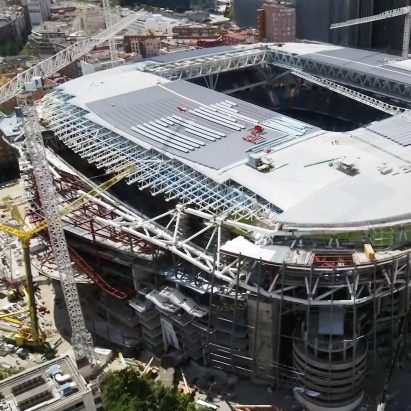 Spanish football club Real Madrid has released a video that shows the ongoing remodeling of its Santiago Bernabéu stadium, including the construction of its retractable pitch. More
