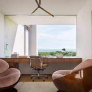 A range of outdoor spaces include an infinity-edge swimming pool and pavilion covered by a sculptural canopy inspired by the work of both Roberto Burle Marx and Oscar Niemeyer.